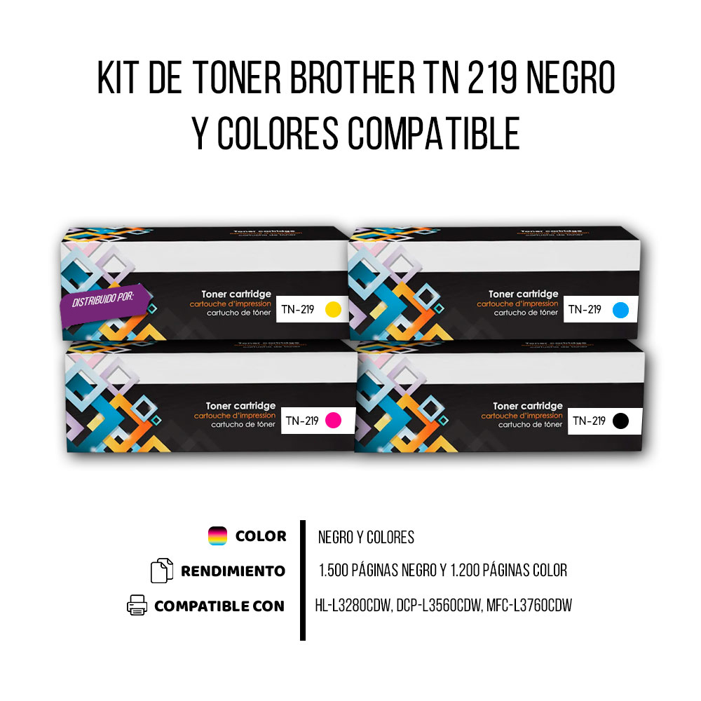 No, el Toner Brother TN219 es compatible exclusivamente con modelos específicos de impresoras Brother, como la Brother L3280Cdw, HL L3240Cdw, DCP L3560Cdw, MFC L3760Cdw.